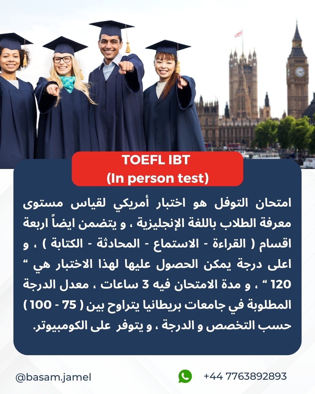 أهم متطلب للدارسة في الجامعات البريطانية هي كفاءة اللغة الانكليزية .. و ذلك من خلال مجموعة من الاختبارات التي تثبت كفاءة اللغة لدى الطالب الراغب بالدراسة في بريطانيا … و من هذه الاختبارات الرئيسية هي …